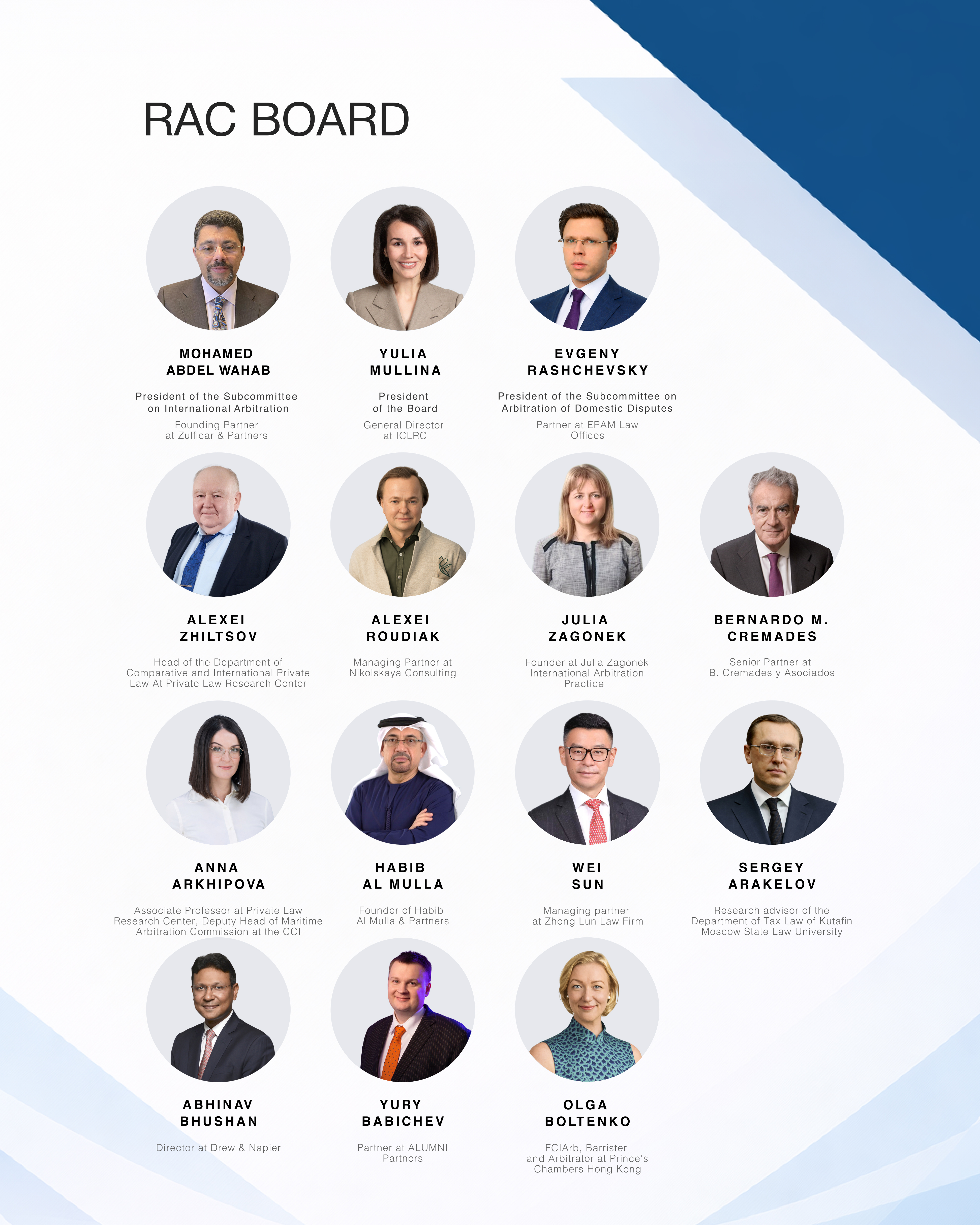 We are absolutely confident that the newly elected members of the Board will strengthen the RAC's expertise in key areas, integrating the best global arbitration practices while maintaining the continuity of established approaches.